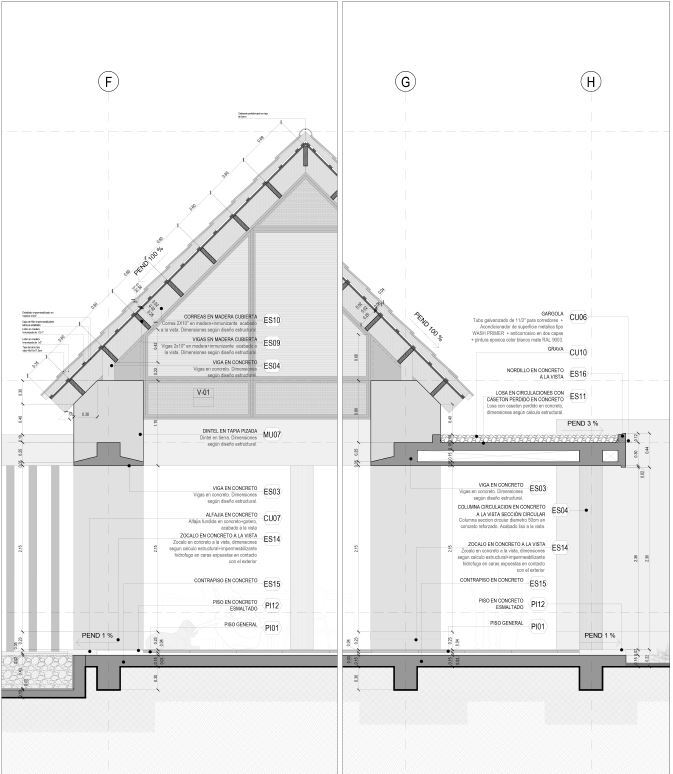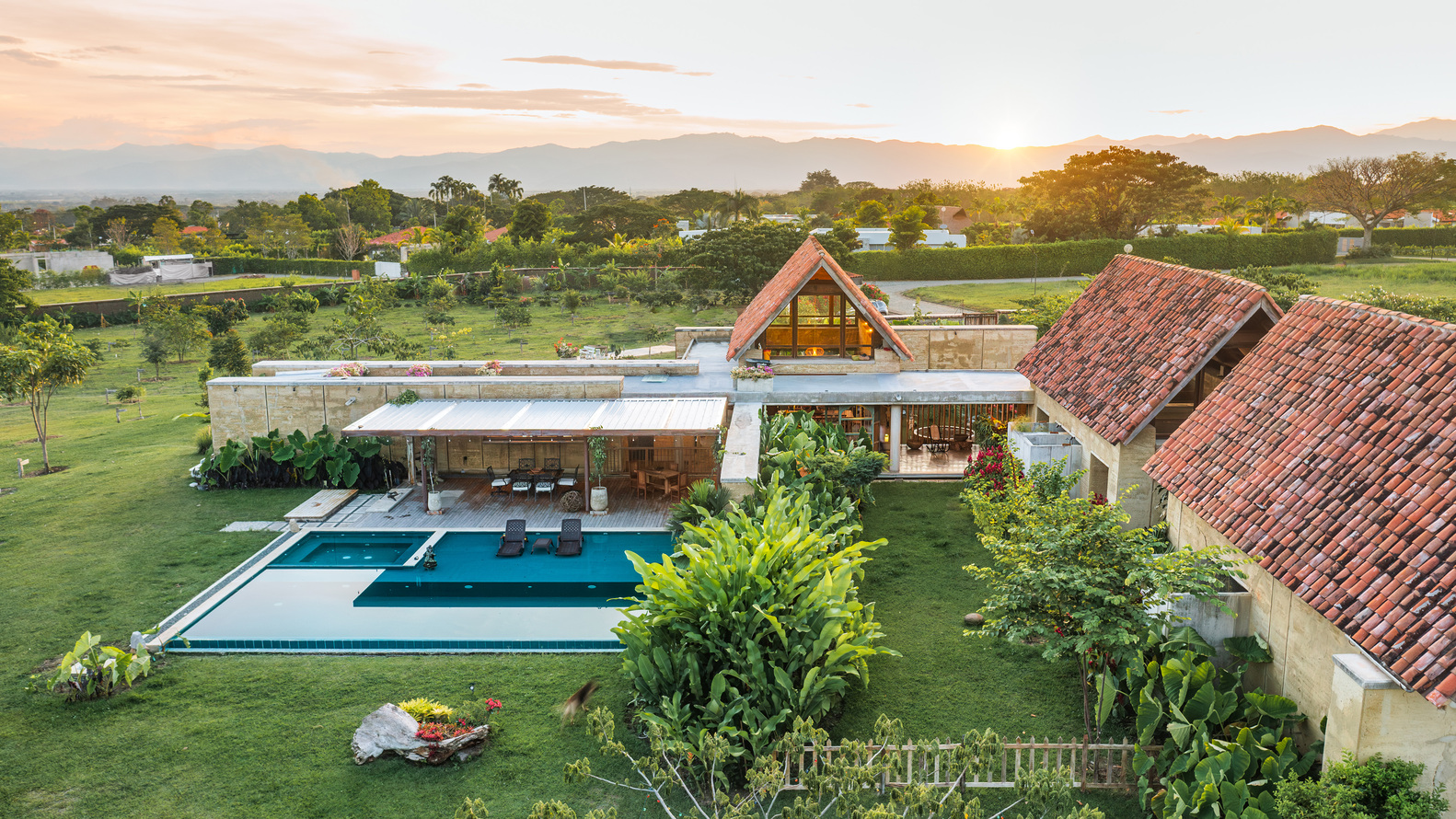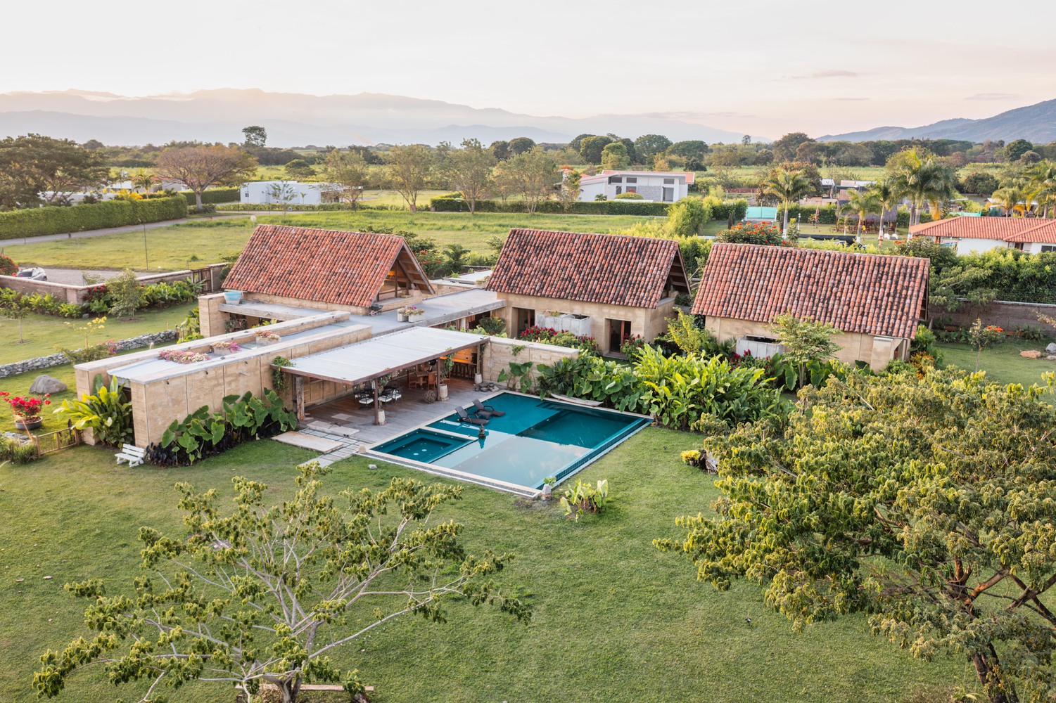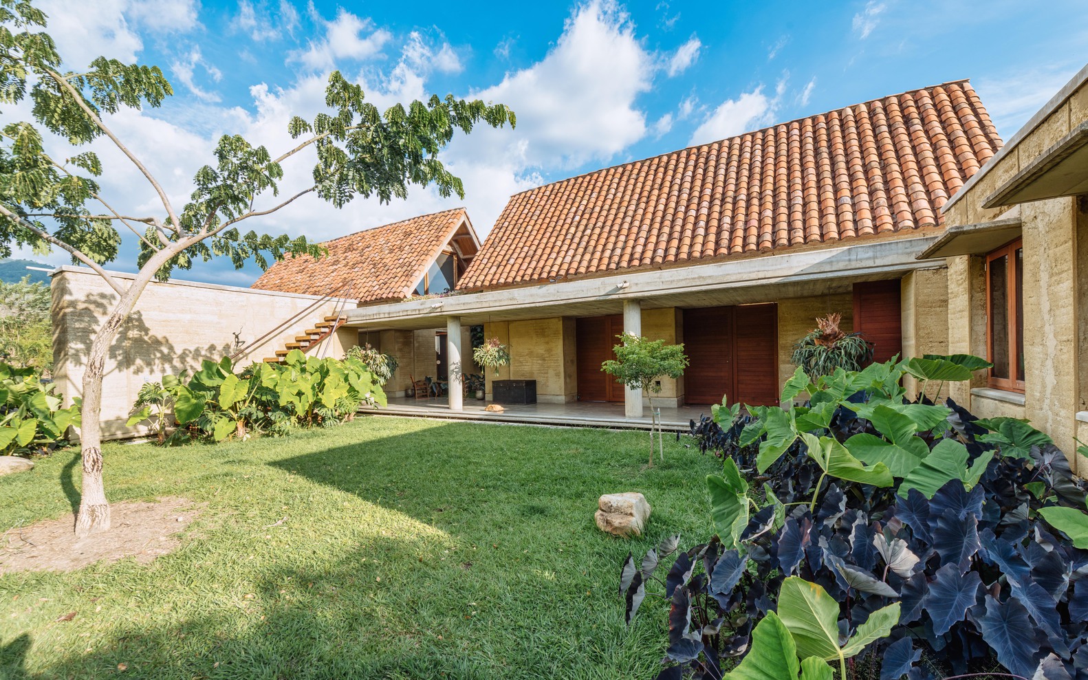 Otro punto clave es la adaptación al clima tropical del valle: se pensó en cubiertas inclinadas para evacuar lluvias, ventilaciones cruzadas, protección solar, y el uso de materiales locales que respondieran bien a la humedad y al calor.